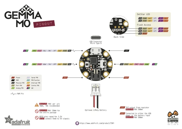 GEMMA M0 Adafruit ATSAMD21E18 Development Board SAM D ARM Cortex-M0+ 32-Bit Embedded Evaluation Board