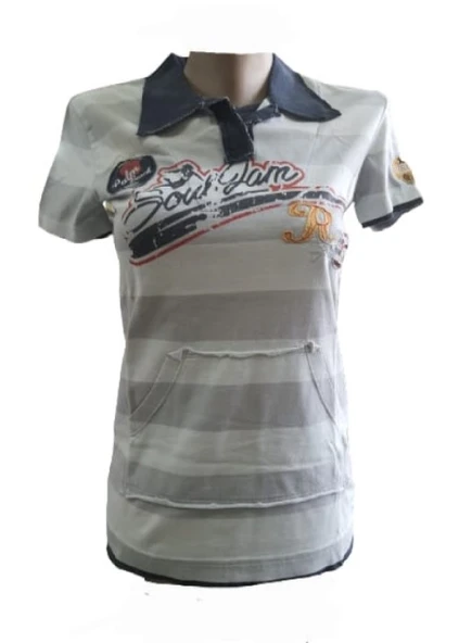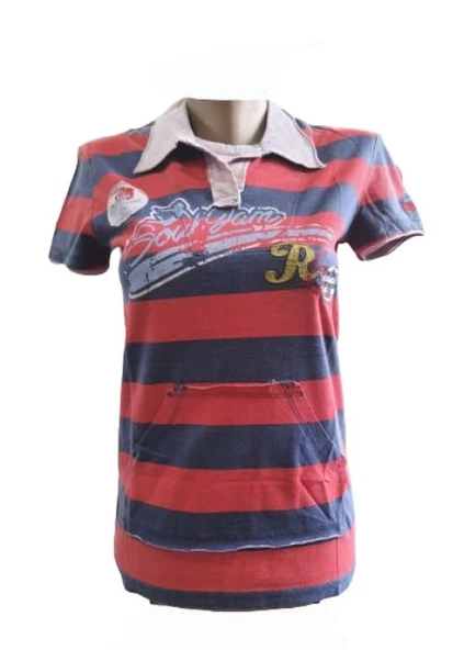Xınt Kadın Polo Yaka Çizgili T-Shirt 6019
