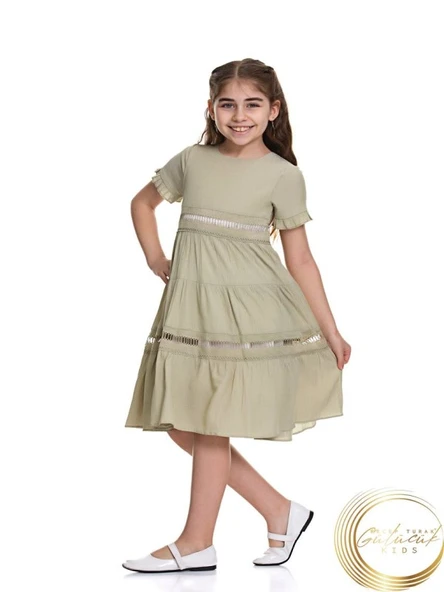 Gülücük Kids G01764-893 Kız Çocuk Güpürlü Elbise