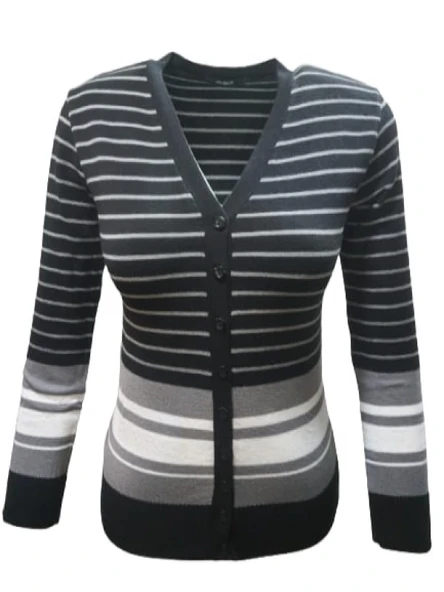 Me-Na 3040 Kadın Triko İnce Çizgili Önden Düğmeli Hırka
