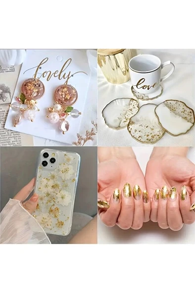 Metalik 4 farklı yaprak varak, gold-silver-rose-şampanya, dekoratif, epoksi reçine-9x9cm-400sayfa