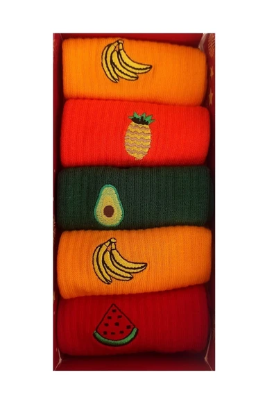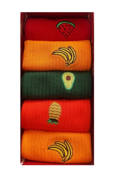 Meyve Işlemeli Çoraplar, Sevimli Çoraplar, Nakışlı Çoraplar, Unisex Çoraplar 5 Çift No:3 Karışık Renk 36 - 40 Beden