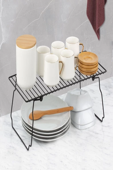 Sas Haus Mutfak Masası Tezgah Üstü Dolap Içi Portatif Katlanabilir Raf Düzenleyici AS-802 SİYAH