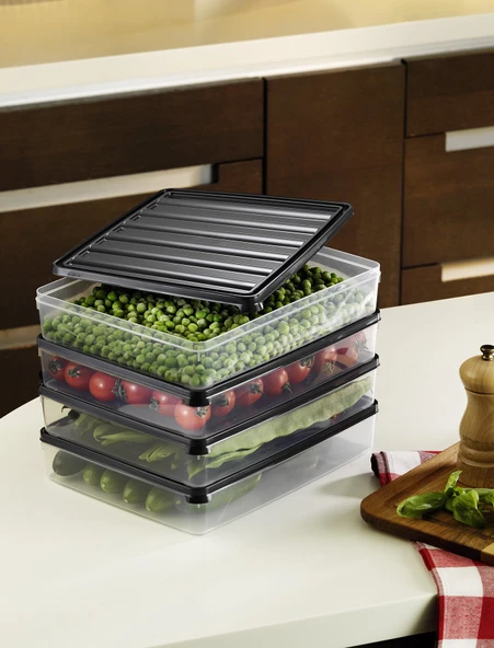 Mikrodalga Ve Difrizde Kullanılabilen Saklama Kabı Seti 4 Lu Antrasit S-404