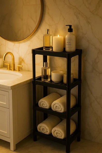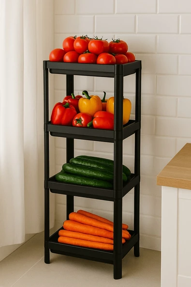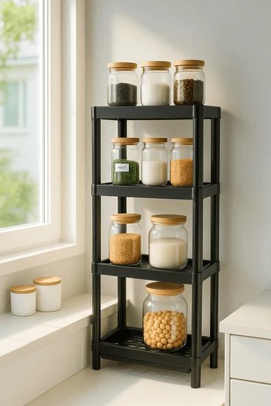 Flex Elite Pro 4 Katlı Mat Siyah Çok Amaçlı Raf Ünitesi – Banyo ve Mutfak Düzenleyici Raf