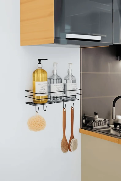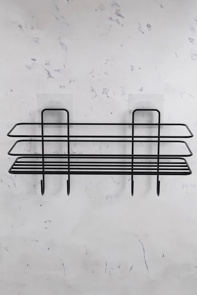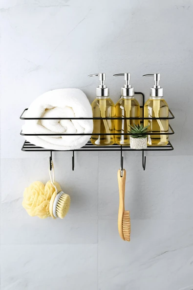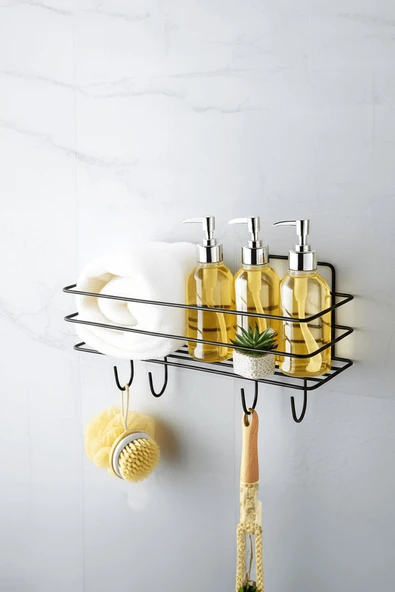 Siyah Yapışkanlı Banyo Rafı Mutfak Rafı Çok Amaçlı Askılı Düzenleyici Organizer Paslanmaz Şampuanlık