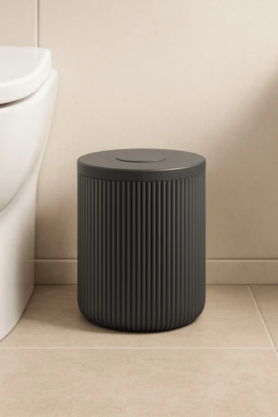 Lines Serisi Antrasit/Gri Akrilik Çöp Kovası – Silindir, 5 Litre, 25cm, Kolay Temizlenir - 3372