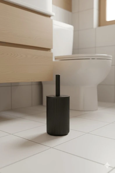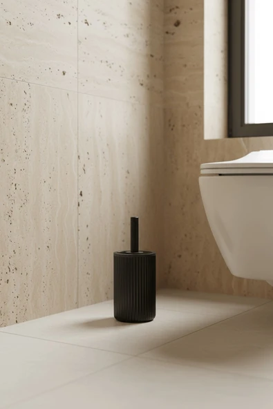 Lines Serisi Siyah Akrilik Tuvalet Fırçası – Silindir Standlı, 34cm, Kolay Temizlik - 3371