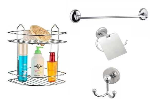 SAS Banyo Aksesuar Seti 4 Lü Krom , Paslanmaz Köşelik Duş Rafı Şampuanlık Krom EK-03