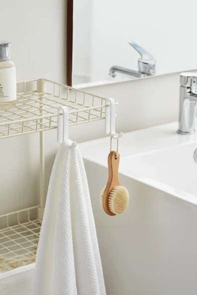 2’li Beyaz Askı Kanca Seti – Banyo & Mutfak Rafları İçin Plastik Askı Aparatı