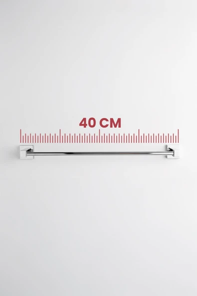 Krom Yapışkanlı Uzun Havluluk – Kare Topuzlu Metal Banyo Havlu Askısı, Dayanıklı & Şık - (101-K) - KTK