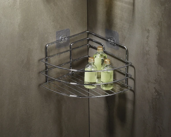 SAS Ömür Boyu Paslanmaz Yapışkanlı Banyo Köşeliği Düzenleyici Şampuanlık Duş Rafı Krom TK-01