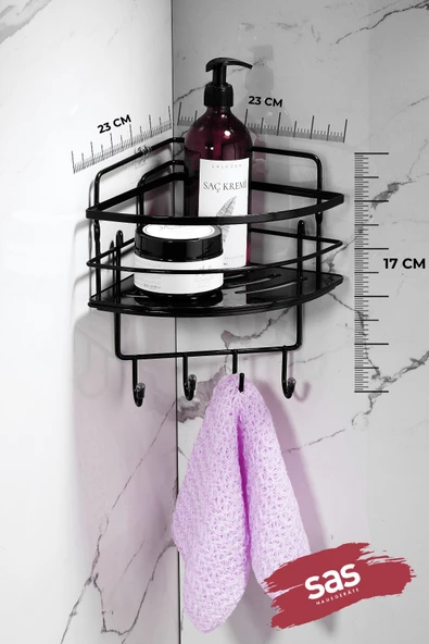 SAS Ömür Boyu Paslanmaz Banyo Mutfak Rafı Şampuanlık Banyo Düzenleyici Siyah TŞ-01