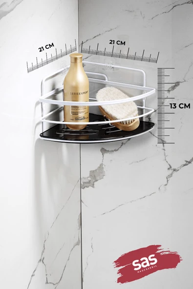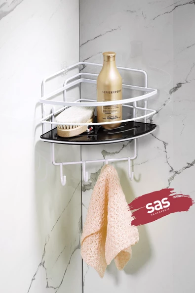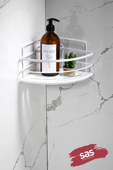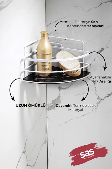 SAS Ömür Boyu Paslanmaz Yapışkanlı Banyo Köşeliği Düzenleyici Şampuanlık Duş Rafı Beyaz EK-03