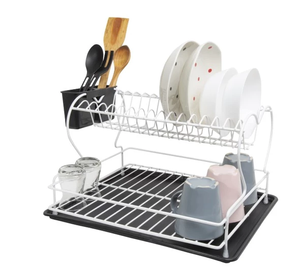 SAS Ömür Boyu Paslanmaz Bulaşıklık Bulaşık Sepeti İkili Tabaklık Termo Plastik Kaplama BEYAZ
