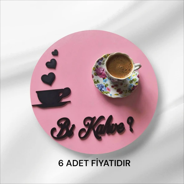 Ahşap boyalı-vernikli 'bi kahve' yazılı kahve sunumluk ( 6 ADET )