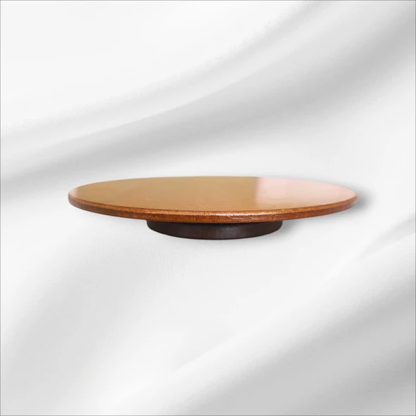 Ahşap vernikli yuvarlak döner sunumluk tepsi