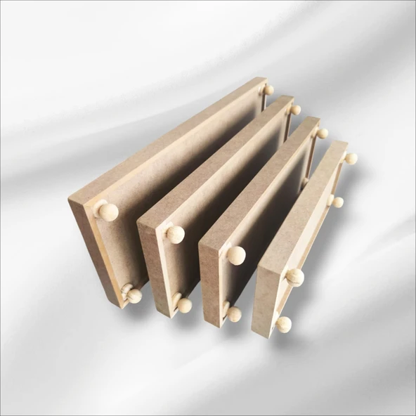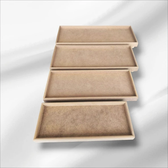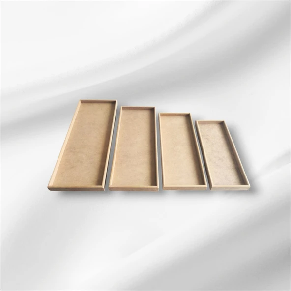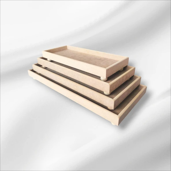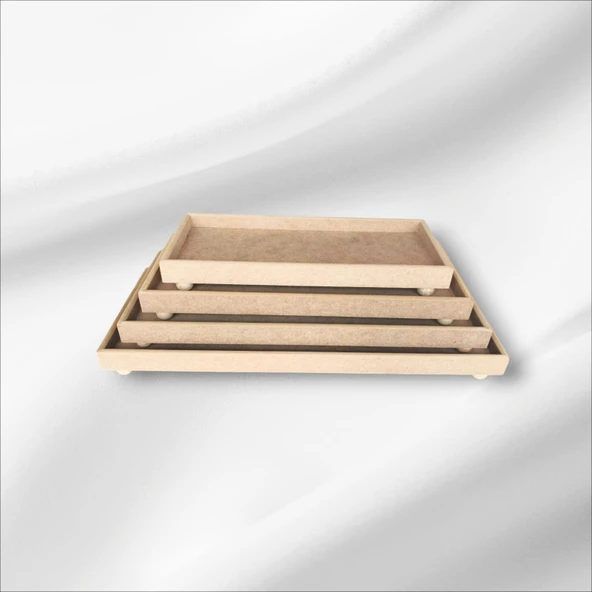 Ahşap boyanabilir ayaklı dikdörtgen 4'lü sunumluk-tepsi takımı
