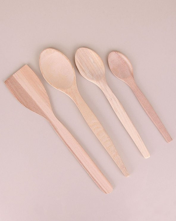 Şeker Portakalım Ahşap 4 Lü Mutfak Takımı Tahta Kaşık Seti