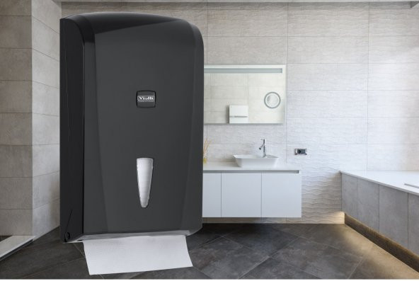 Vialli K1B Banyo Mutfak Lavabo Pratik Z Katlı Kağıt Havlu Dispenseri Kapasite 200 Kağıt Siyah