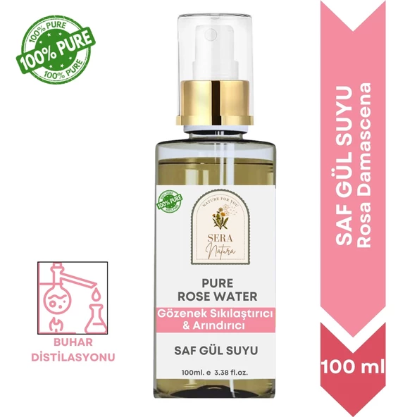 Saf Gül Suyu Arındırıcı & Gözenek Sıkılaştırıcı Cilt Bakım Toniği 100 ml. %100 Saf