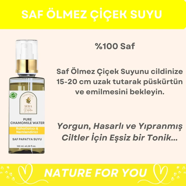 Saf Ölmez Çiçek Suyu Hasarlı & Yıpranmış Ciltler için Cilt Toniği 100 ml. %100 Saf