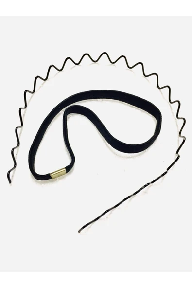 BB wikiki 2'li Erkek Saç Tokası Zigzag Metal Taç + Siyah Lastikli Saç Bantı Yogo Bandı
