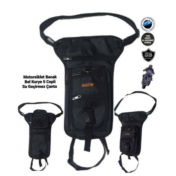 Motorsiklet Bacak Bel Kurye Su Geçirmez 5 Gözlü Çanta