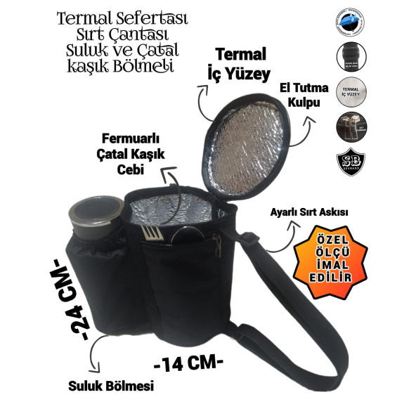 TERMAL SEFERTASI ÇANTASI SULUK VE ÇATAL KAŞIK BÖLMELİ SU GEÇİRMEZ TERMOS ÇANTA