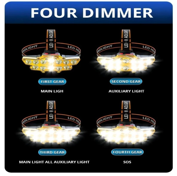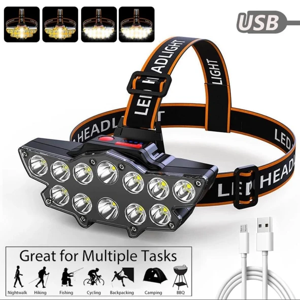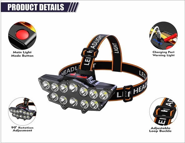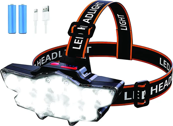 SGE TEKNOLOJİ ŞARJLI 12 LED KAFA LAMBASI AVCI IŞILDAK BALIKÇI KAMP LAMBASI