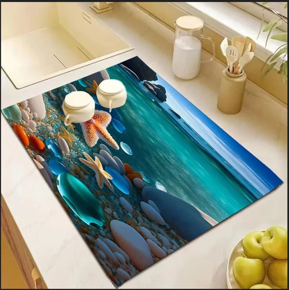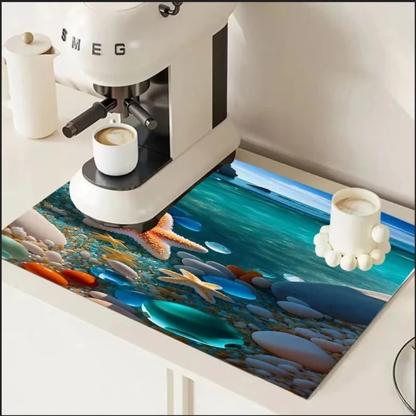 55 CM x 45 CM DENİZ YILDIZI TASARIMI TEZGAH ÜSTÜ BULAŞIK KURUTMA MATI BULAŞIKLIK KURUTMA ÖRTÜSÜ