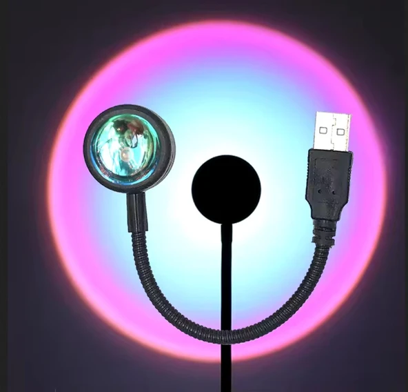 MİGHTY GÜN BATIMI RENK USB PROJEKTÖR GECE VE MASA LAMBASI FOTOĞRAF ÇEKİM IŞIĞI DEKORATİF IŞIK