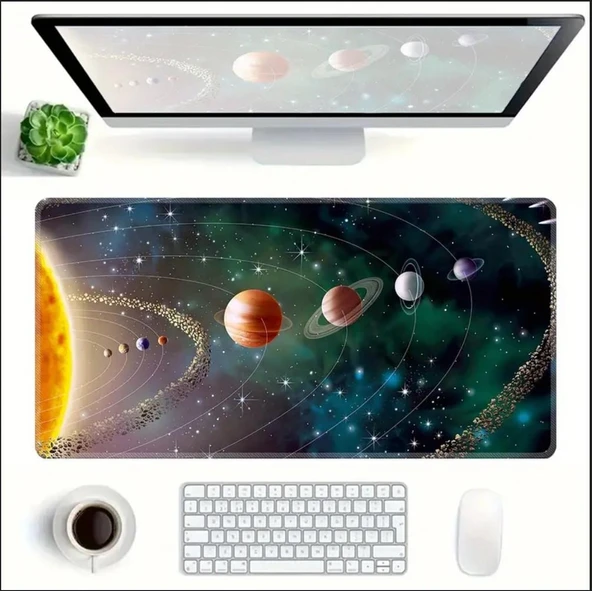 70X30 CM GÜNEŞ SİSTEMİ TEMALI KAYDIRMAZ TABAN SPEED YÜZEY OYUNCU MOUSE PAD GAMİNG