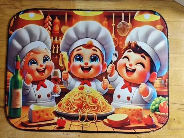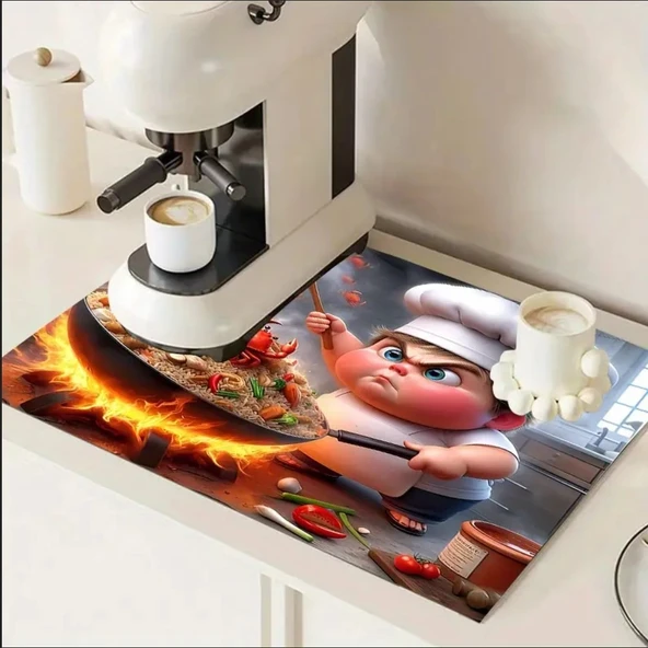 55 CM x 45 CM ŞEF KARİKATÜRÜ TASARIMI TEZGAH ÜSTÜ BULAŞIK KURUTMA MATI BULAŞIKLIK KURUTMA ÖRTÜSÜ