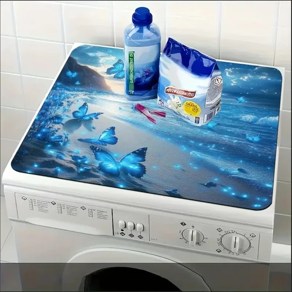 55 CM x 45 CM MAVİ KELEBEK TASARIMI TEZGAH ÜSTÜ BULAŞIK KURUTMA MATI BULAŞIKLIK KURUTMA ÖRTÜSÜ