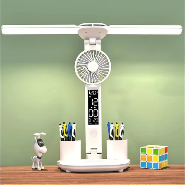 FANLI ÇOK FONKSİYONLU 3 RENK MASA ÜSTÜ LED IŞIK MASA SAATİ KALEMLİK TERMOMETRE