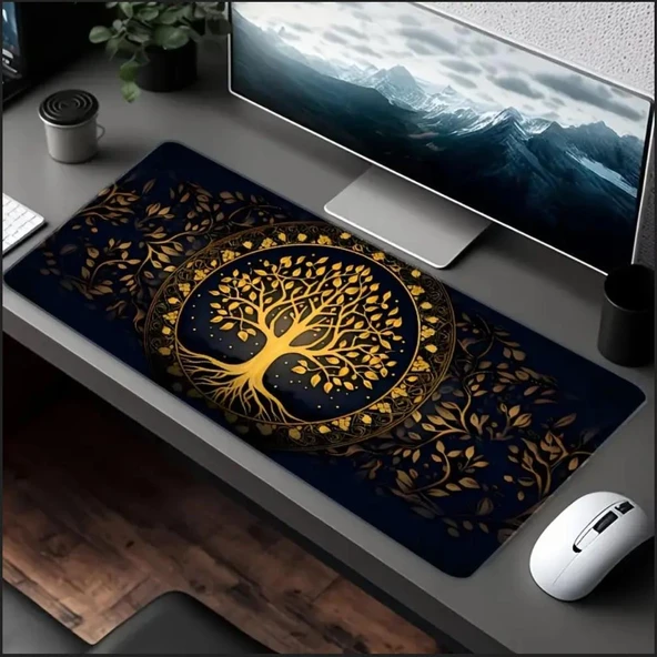 70X30 CM ALTIN HAYAT AĞACI TEMALI KAYDIRMAZ TABAN SPEED YÜZEY OYUNCU MOUSE PAD GAMİNG