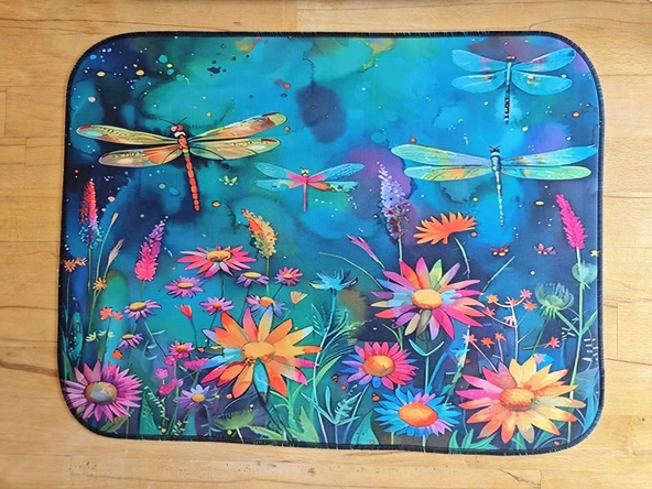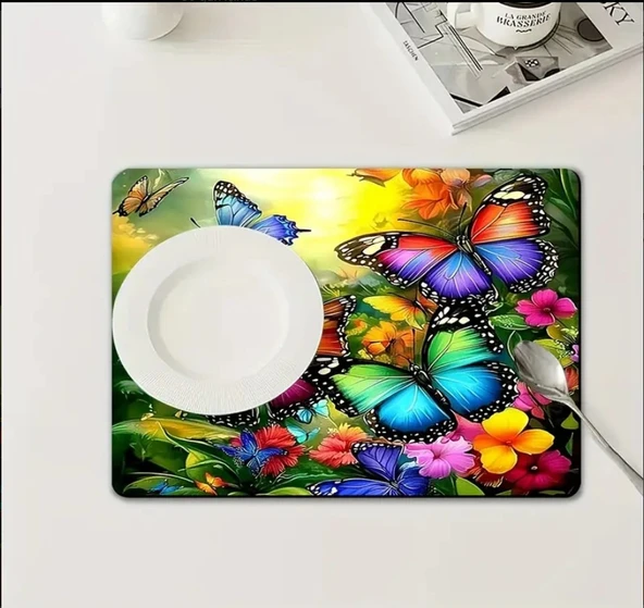 55 CM x 45 CM CANLI KELEBEK VE ÇİÇEK TASARIMI TEZGAH ÜSTÜ BULAŞIK KURUTMA MATI BULAŞIKLIK KURUTMA ÖRTÜSÜ