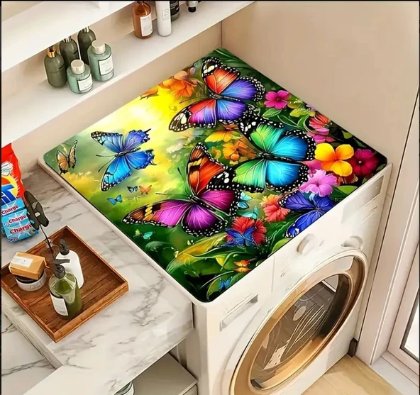 55 CM x 45 CM GÖKKUŞAĞI KELEBEK ÇİÇEK TASARIMI TEZGAH ÜSTÜ BULAŞIK KURUTMA MATI BULAŞIKLIK KURUTMA ÖRTÜSÜ