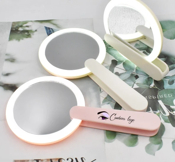 KATLANABİLİR BEYAZ RENK EL TİPİ IŞIKLI LED TAŞINABİLİR MAKYAJ AYNASI