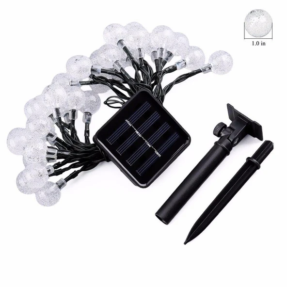 SGE TEKNOLOJİ 7 METRE 50 LED ŞEFFAF KRİSTAL TOP RENKLİ SOLAR GÜNEŞ ENERJİLİ BAHÇE TERAS PARTİ BALKON SÜSÜ AYDINLATMA LAMBASI