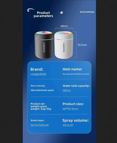 MİGHTY RGB SİYAH 180 ML USB ULTRASONİK OFİS ODA VE ARABA HAVA NEMLENDİRİCİ BUHAR MAKİNESİ AROMA DİFİZÖRÜ