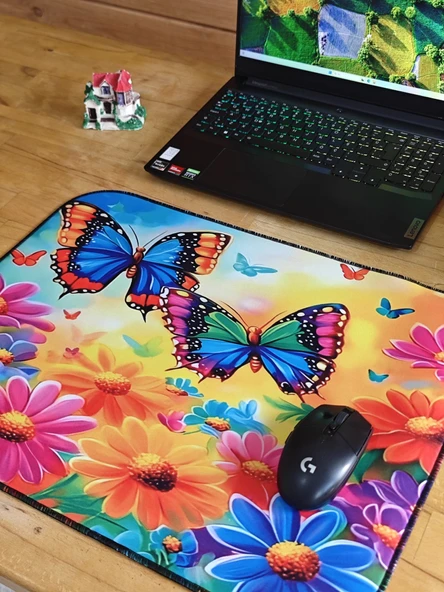 SGE TEKNOLOJİ 55X45 CM KELEBEK ÇİÇEK KAYDIRMAZ TABAN SPEED YÜZEY OYUNCU MOUSE PAD GAMİNG PAD