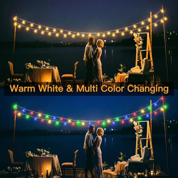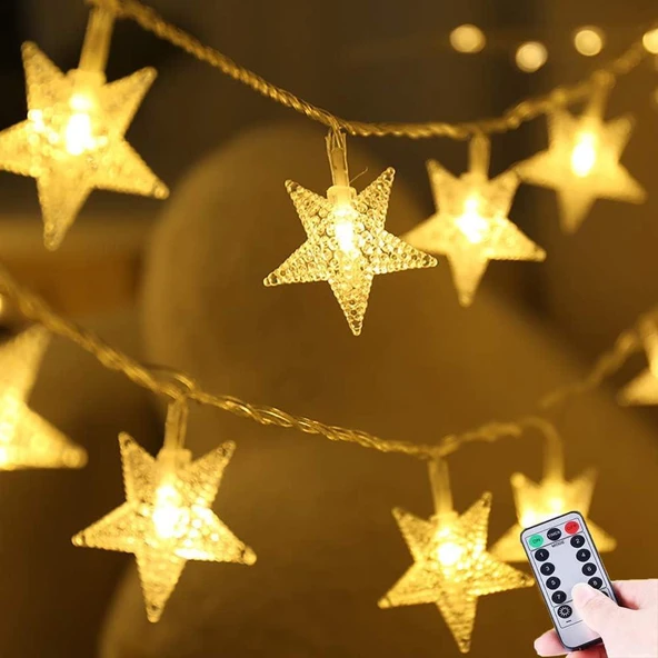 SARI VE RENKLİ 12 METRE 100 LED YILDIZ USB GİRİŞLİ SARI IŞIK KUMANDALI 8 MODLU EV BAHÇE BALKON AĞAÇ ÇİT SÜSÜ LED IŞIK LAMBA