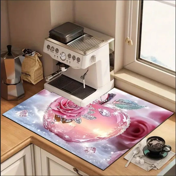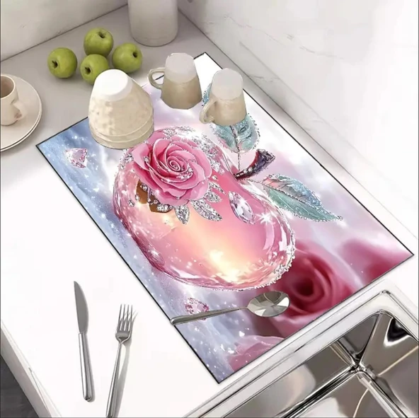 55 CM x 45 CM GÜL ELMAS TASARIMI TEZGAH ÜSTÜ BULAŞIK KURUTMA MATI BULAŞIKLIK KURUTMA ÖRTÜSÜ