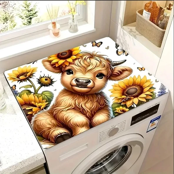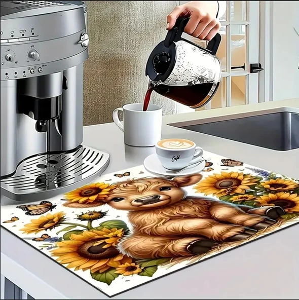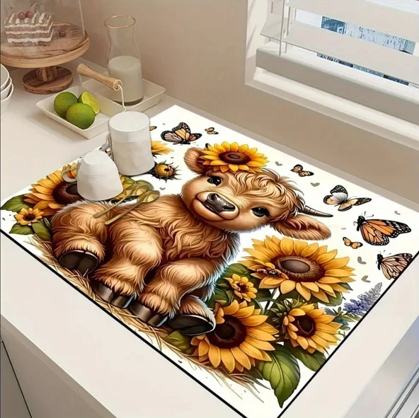 55 CM x 45 CM YAYLA İNEĞİ VE AYÇİÇEĞİ TASARIMI TEZGAH ÜSTÜ BULAŞIK KURUTMA MATI BULAŞIKLIK KURUTMA ÖRTÜSÜ