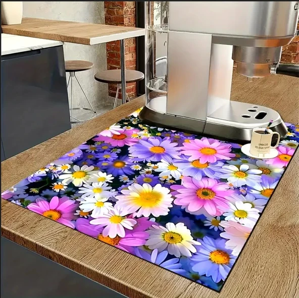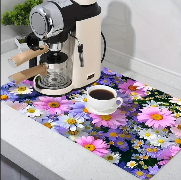 55 CM x 45 CM RENKLİ PAPATYALAR TEZGAH ÜSTÜ BULAŞIK KURUTMA MATI BULAŞIKLIK KURUTMA ÖRTÜSÜ