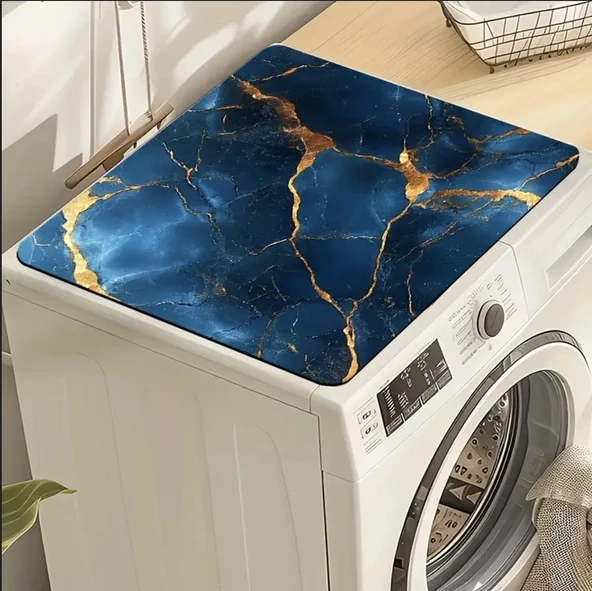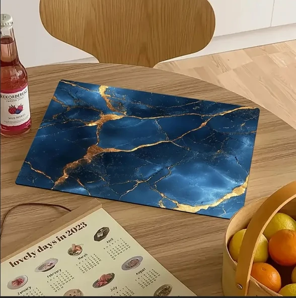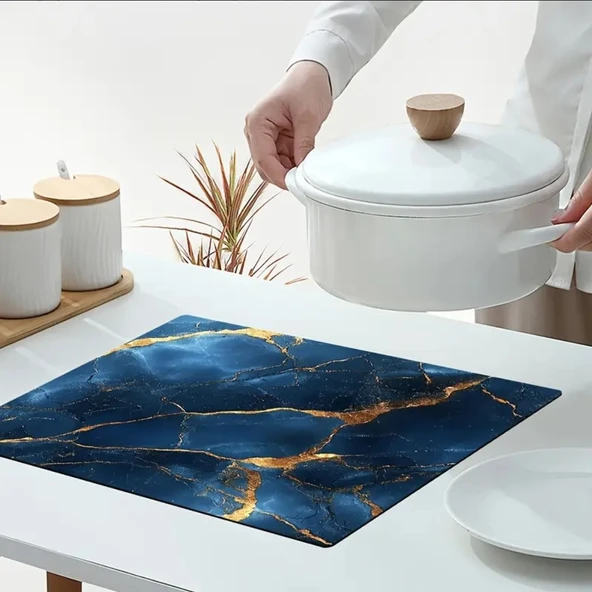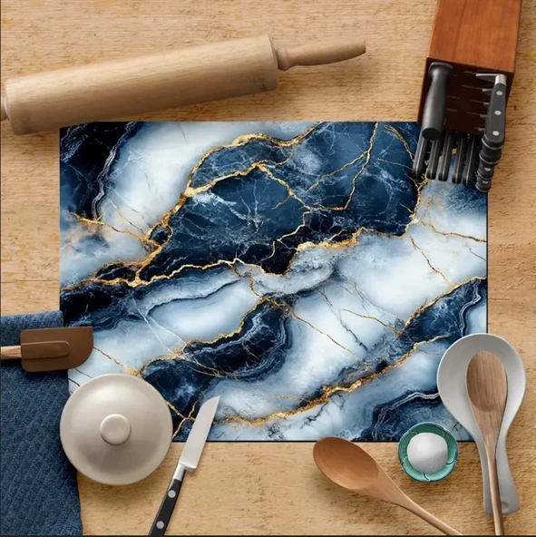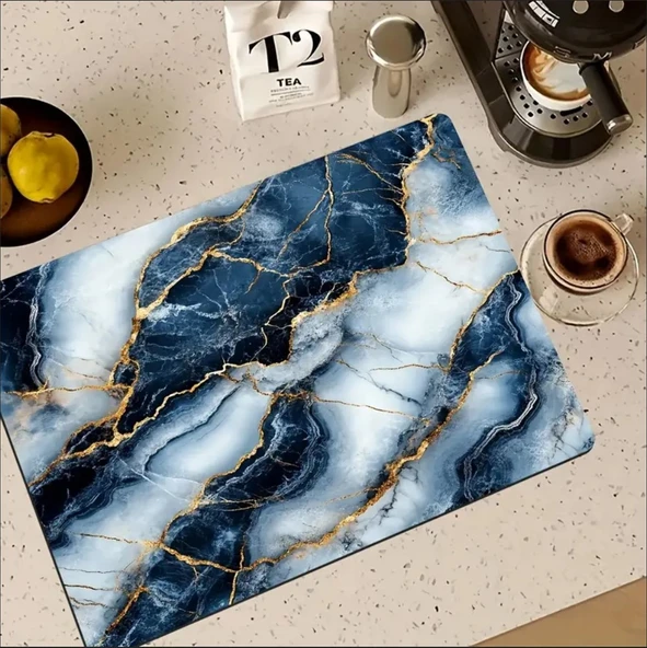55 CM x 45 CM ALTIN DAMARLI MAVİ MERMER TEMALI TEZGAH ÜSTÜ BULAŞIK KURUTMA MATI BULAŞIKLIK KURUTMA ÖRTÜSÜ