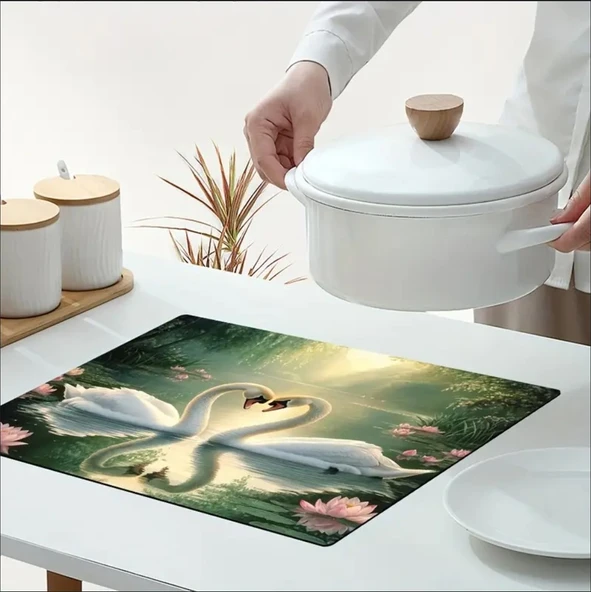55 CM x 45 CM KUĞU KALP TASARIMI TEZGAH ÜSTÜ BULAŞIK KURUTMA MATI BULAŞIKLIK KURUTMA ÖRTÜSÜ