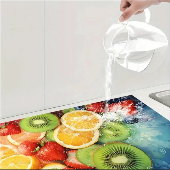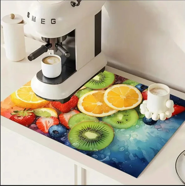 55 CM x 45 CM SERİN MEYVE TASARIMI TEZGAH ÜSTÜ BULAŞIK KURUTMA MATI BULAŞIKLIK KURUTMA ÖRTÜSÜ